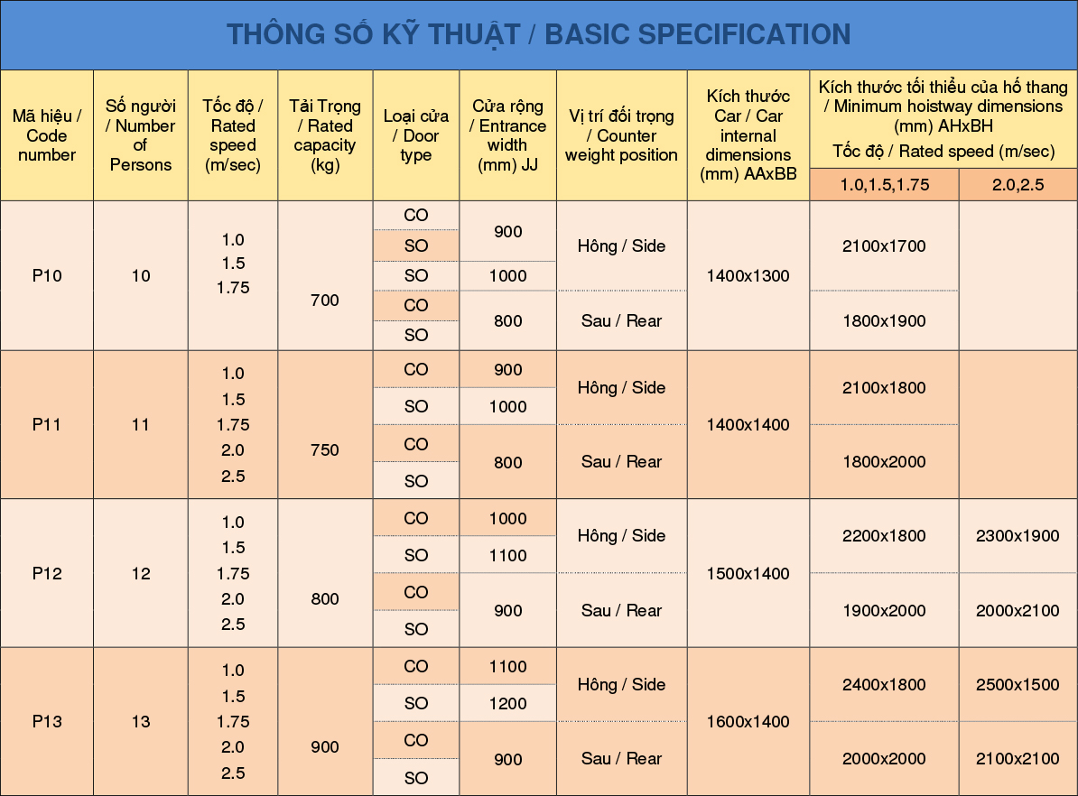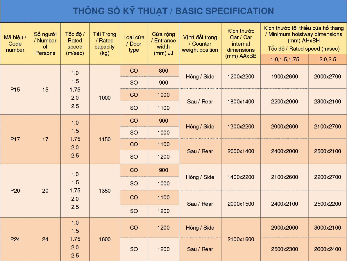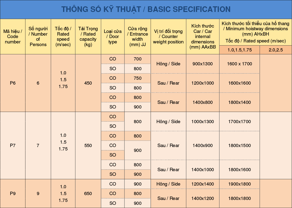 Thang máy vận chuyển hành khách có nhiều loại khác nhau, được phân loại như sau: